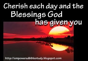 (2 Corinthians 12:15) We should CHERISH correction (Solomon 15:31-32) When we CHERISH constructive criticism, You will be at home among the wise (NIV) When we listen to correction we grow in understanding (verse 32 NIV) In this world people CHERISH the latest mobile phone they snagged after waiting in line for hours. They CHERISH their tennis shoe collection. They CHERISH their cars, their homes, even their pets. Liking these things may not be a sin, but when we CHERISH them...have deep affection for the things of the world, then it becomes a problem. When I was younger I often took stock of myself to see what was too important in my life. I did this out of fear. After all, The Lord giveth and the Lord taketh away (Job 1:21) That is not what God wants from us. He wants us to CHERISH spiritual things and not earthly things that do not matter. Matthew 6:19 cautions us, Do not store up for yourself treasures on earth, where moths and vermin destroy, and where thieves break in and destroy. (NIV) We should CHERISH God's Word. We should CHERISH Christ Jesus who laid down His life for our sins. We should CHERISH people and especially have great affection for the widows and children who are fatherless...having compassion for them. This gives me a lot to ponder over. What do I really CHERISH most in life? I am sure the same is true for you as well. What do you CHERISH most in your life? What has all your time and attention and deep affections? Remember it is spiritual things that matter most.